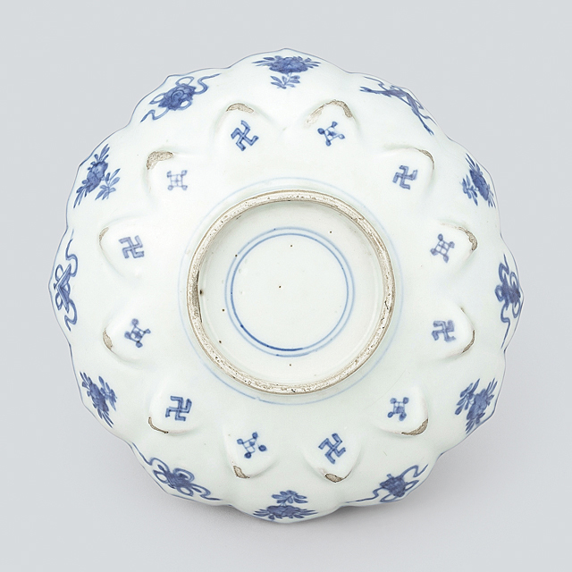 【Lot0925】 古染付山水釣舟文輪花鉢