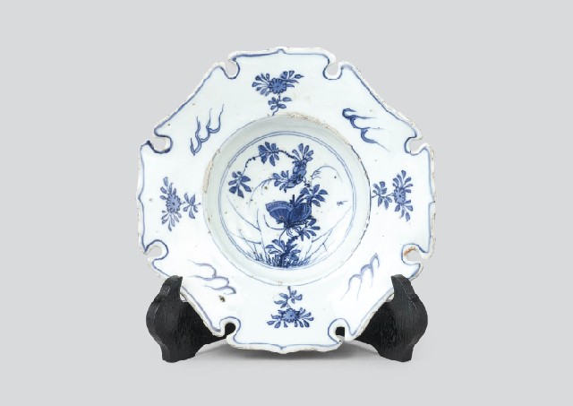 【Lot0926】 古染付花蝶文雪輪形鉢