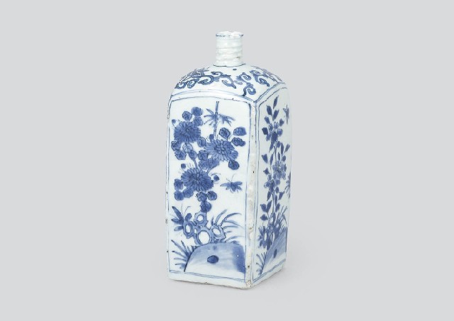 【Lot0929】 古染付草花虫文角瓶