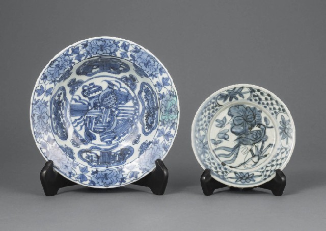 染付宝尽文鉢/H7.6×W24.5cm 直し 呉須染付花鳥文皿/W17.4cm