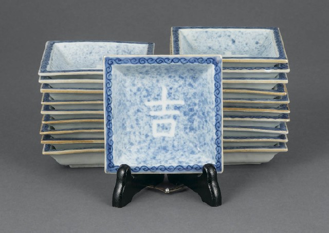 【Lot0947】 染付吹墨吉字文角皿(20点)