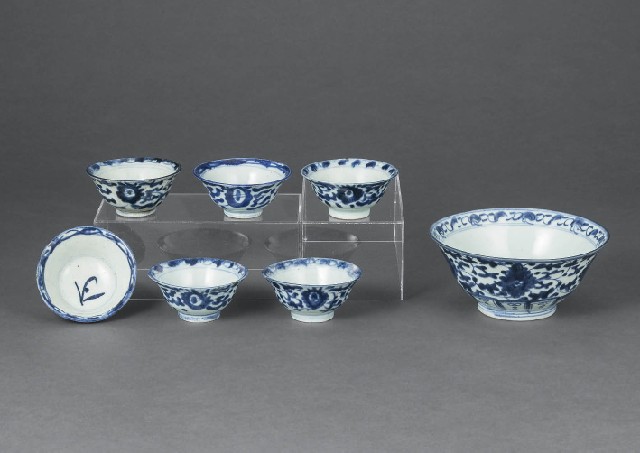 【Lot0948】 染付花文碗(6点)・染付花唐草文鉢 [2組セット]