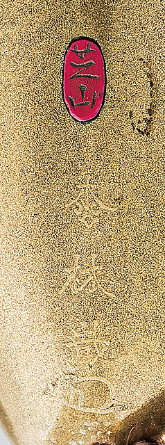 印籠/H8.6×W5.6×2.1cm 底部に刻銘「芝山」、描き銘「枩林哉(花押)」 漆のハガレ 根付/H3.2×W3.8×2.7cm イタミ 緒締付