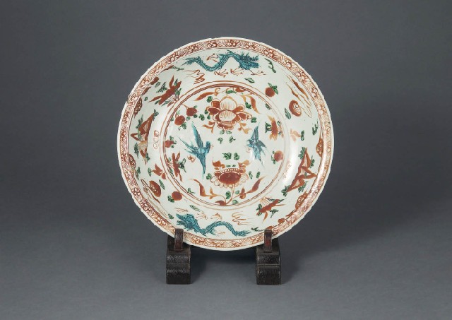 【Lot0951】 呉須赤絵龍鳳文大皿
