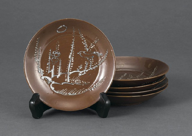 【Lot0965】 柿地餅花手梅に鶯文皿(5点)