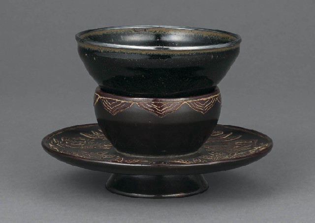 天目茶碗・堆漆椿文天目台 [2点セット]