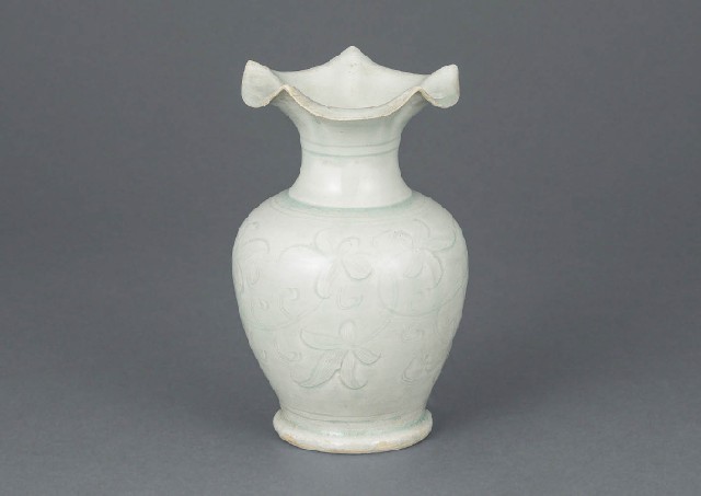【Lot0979】 青白磁陰刻蓮華文蓮葉口瓶