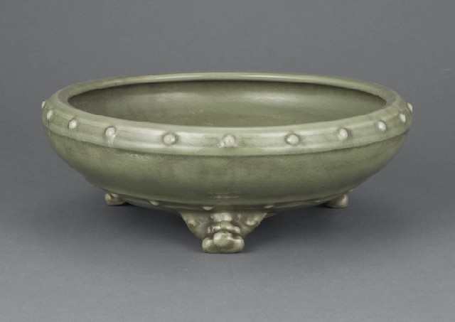 【Lot0990】 龍泉窯青磁擂座三足鉢