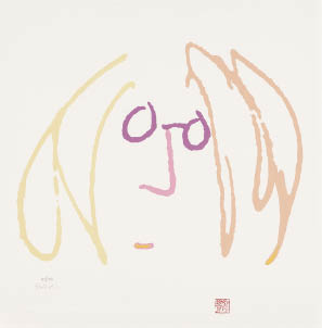 シルクスクリーン 37×46cm 「オノ・ヨーコ」のサインと「ジョン・レノン」の印 ed.150 マージン数ヶ所に薄いシミ 版面は大体良好 額付*