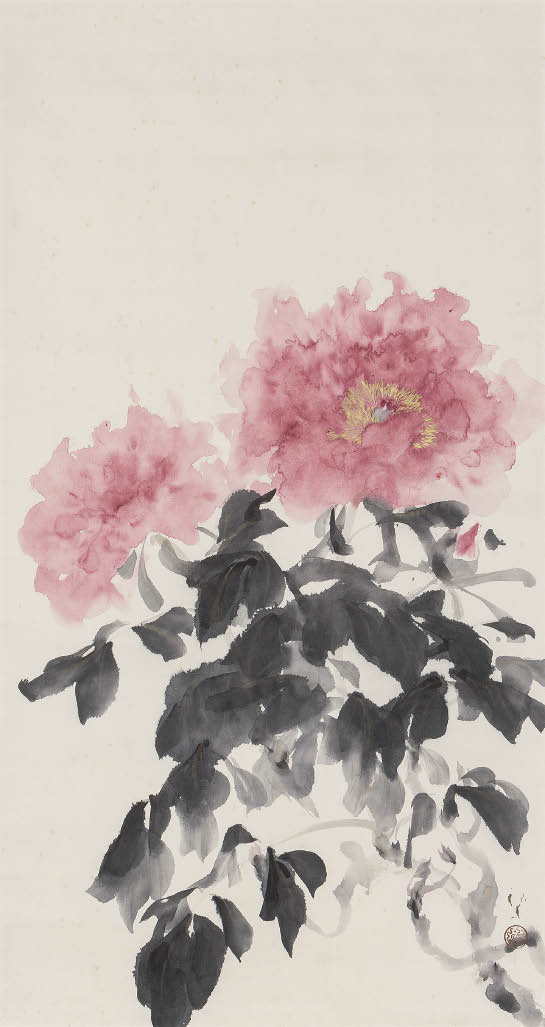 昭和12年(1937年) 紙本・墨彩 125.5×66.8cm 落款と印有 軸装 画面全体に薄いヤケ、所々にシミ、数ヶ所にシワ 共箱