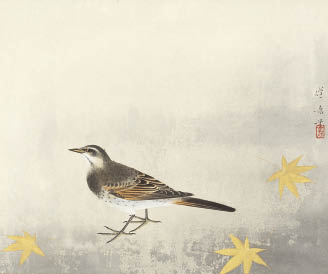 紙本・彩色 42×50.7cm 落款と印有 軸装 画面全体に薄いヤケ、数ヶ所に薄いシミ 共箱