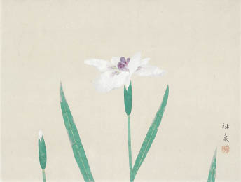 1948年 紙本・彩色 37.2×49.2cm 落款と印有 軸装 画面全体に薄いヤケ、数ヶ所に小さなシミ、小さなヒビ、補彩、1ヶ所に剥落 共箱