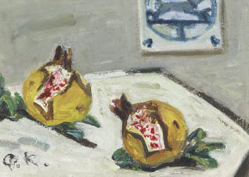 キャンバスに油彩 24.3×33.4cm(F4号) サイン有 画面数ヶ所にヒビ 共箱 額付