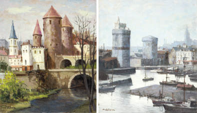 キャンバスに油彩 F10号 サイン有 キャンバス裏木枠にもサイン、タイトル 画面縁沿い数ヶ所に小さな剥落 もう1点は【朝のラ・ロッシェル港】(表題と同データ) 2点共額無