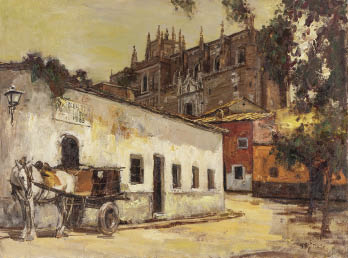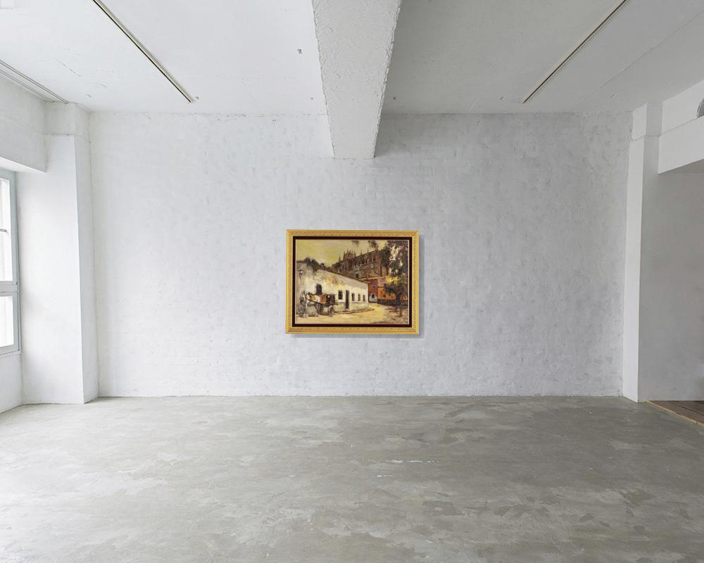 キャンバスに油彩 F60号 サイン有 画面数ヶ所にヒビ 額付