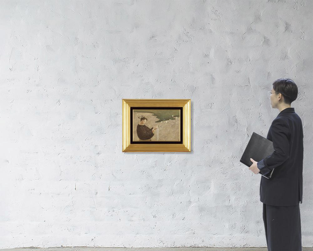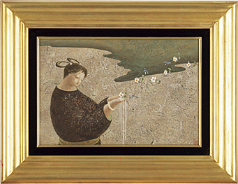 2002年 パネルに貼付したキャンバスにミックストメディア P6号 サイン有 パネル裏に共シール 額付