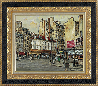 キャンバスに油彩 F8号 サイン有 キャンバス裏にもサイン、タイトル 画面所々にヒビ、数ヶ所にわずかな絵具の浮き、剥落、修復 額付