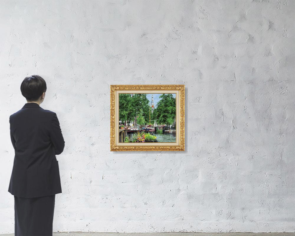 キャンバスに油彩 F10号 サイン有 キャンバス裏木枠にもサイン、タイトル 「日動画廊」シール 画面数ヶ所に絵具の縮み 額付
