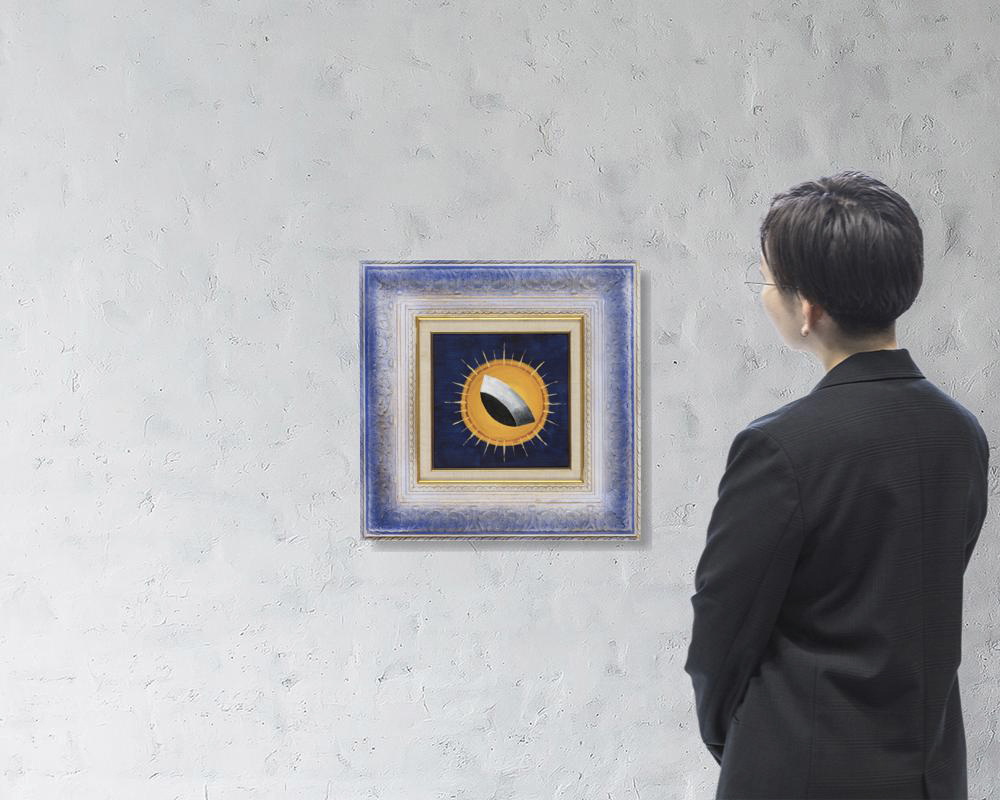 キャンバスにアクリル 21.5×21.5cm キャンバス裏にサイン、「0022」の記述 キャンバス裏木枠に「南天子画廊」シール 額付