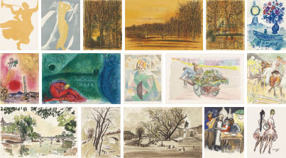 ゴンクール協会のメンバー10名によるテキストにシャガール(MOURLOT 351~353/CRAMER books 53)、ピカソ(M.353~355/B.1034~1036)、ブラック(V.P.298)、ヴィヨン(GINESTET & POUILLON App.115~117)、カルズー(FRANCONY 92を含む)、ヴァン・ドンゲン、マッソン、ボーダン、ブリアンション、スゴンザックのリトグラフ33点が収められた挿画本 1963年 40.5×31(本)cm 1点にサイン 総ed.180部より巻頭にサインとed.の印字 ANDRE SAURET刊 いずれもシート全体に薄いヤケ 数枚のシート数ヶ所にシミ、シワ 1枚のテキストページ縁沿い2ヶ所にテープの剥し跡 1枚のテキストページ1ヶ所にわずかなヘコミ オリジナルケース付