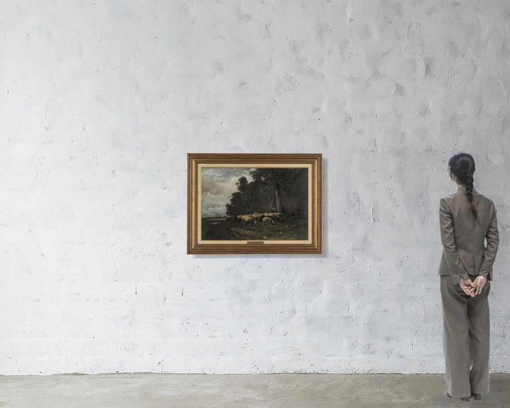 キャンバスに油彩 68×100cm サイン有 画面所々に絵具の縮み、ヒビ、数ヶ所に小さな剥落、修復 額付