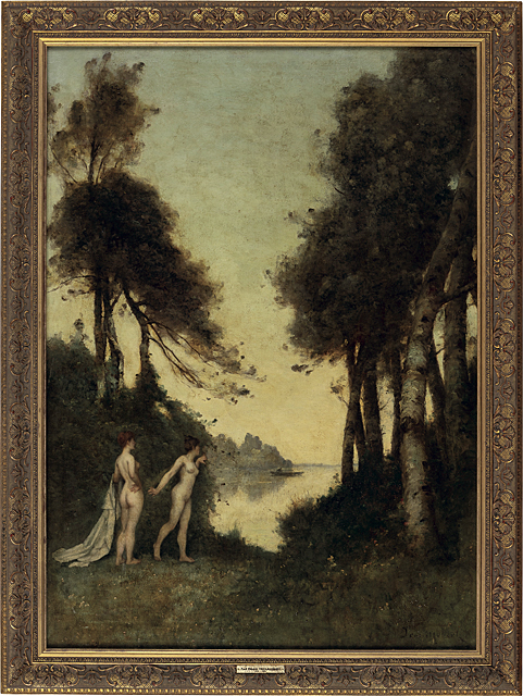 キャンバスに油彩 142.5×102cm サイン有 「GALERIE MARCEL FLAVIAN」シール キャンバスによる裏打ち 画面全体にニスの変色、所々にシミ、剥落、ヒビ、絵具の縮み、修復 額付