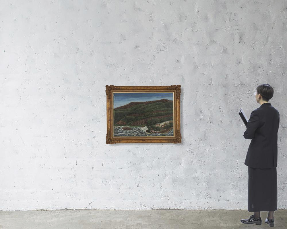 1944年 キャンバスに油彩 73×100cm(仏F40号) サイン有 キャンバス裏木枠に「ギャルリーためなが」シール キャンバスによる裏打ち 画面所々にヒビ、数ヶ所に剥落 額付