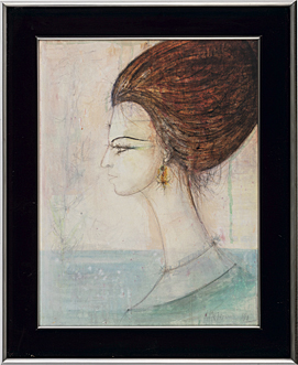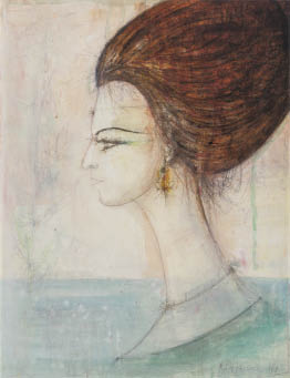 1969年 紙に水彩・鉛筆・パステル 65×49.5(紙)cm サイン有 パネルによる裏打ち 画面全体に薄いヤケ、縁沿い数ヶ所にシミ、剥落 額付