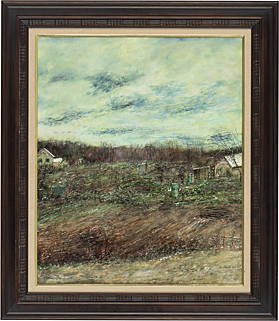 キャンバスに油彩 仏F15号 サイン有 額裏にもサイン、献辞 額付