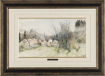 2006年 紙に水彩・パステル 25.8×45.3(紙)cm サイン有 画面全体に薄いヤケ もう1点は【私の村の道】(リトグラフ 40.3×60.5cm サイン有 ed.185 大体良好) 2点共額付