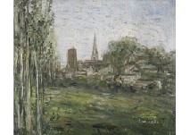 パネルに貼付したキャンバスに油彩 M20号 サイン有 パネル裏に貼付した紙にもサイン、タイトル 画面縁沿い数ヶ所にわずかなコスレ 額付*