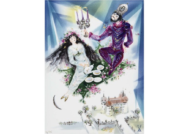 【Lot0183】 陶板画 「空飛ぶ絨毯とモーリッツブルグ城(アラビアンナイトより)」