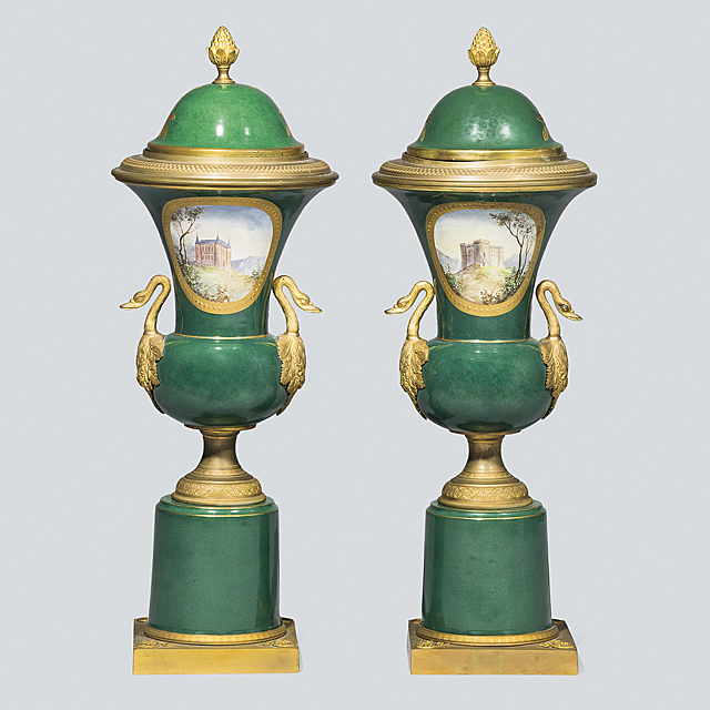 ナポレオン文蓋付飾り壺(1対)