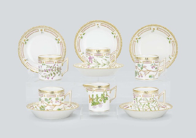 1980-1994年 クリーマー/H7cm カップ5点/D7cm ソーサー6点/D14.1cm 各底部に窯印