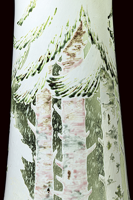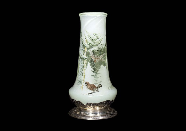 雀に雪持ち樅文花瓶