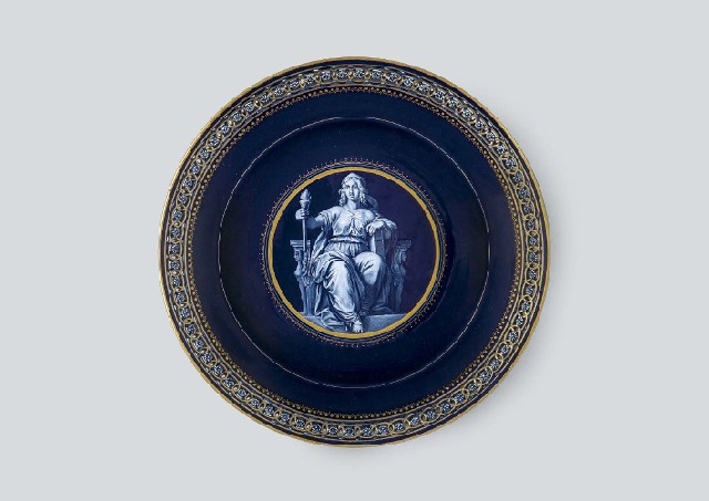 【Lot0081】 コバルト透し絵皿 「自由の女神」