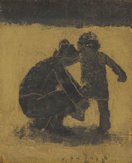 ミニアチュール(板に油彩) 15.7×13.3cm 画面下部中央にサイン 板裏にもサイン、タイトル、「個展」(高島屋)出展作品シール 額付