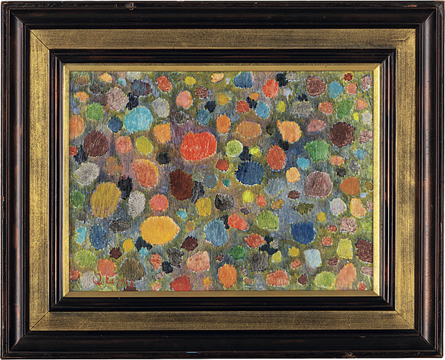 1958年 板に油彩 24.2×33.3cm 画面左下にサイン、年記 板裏にもサイン、タイトル、年記 作品は裏面を木枠に固定 額付