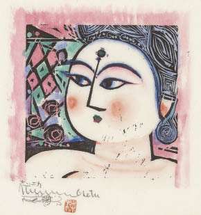講談社8巻No.23 1961年 板画に手彩・裏手彩 23.2×24.2cm シートサイズ 34.5×32.7cm マージン左下にサインと印 額付