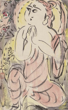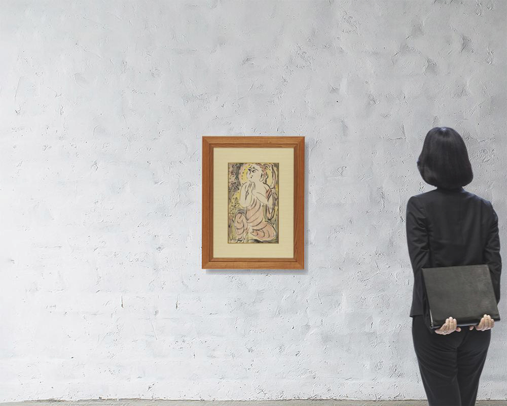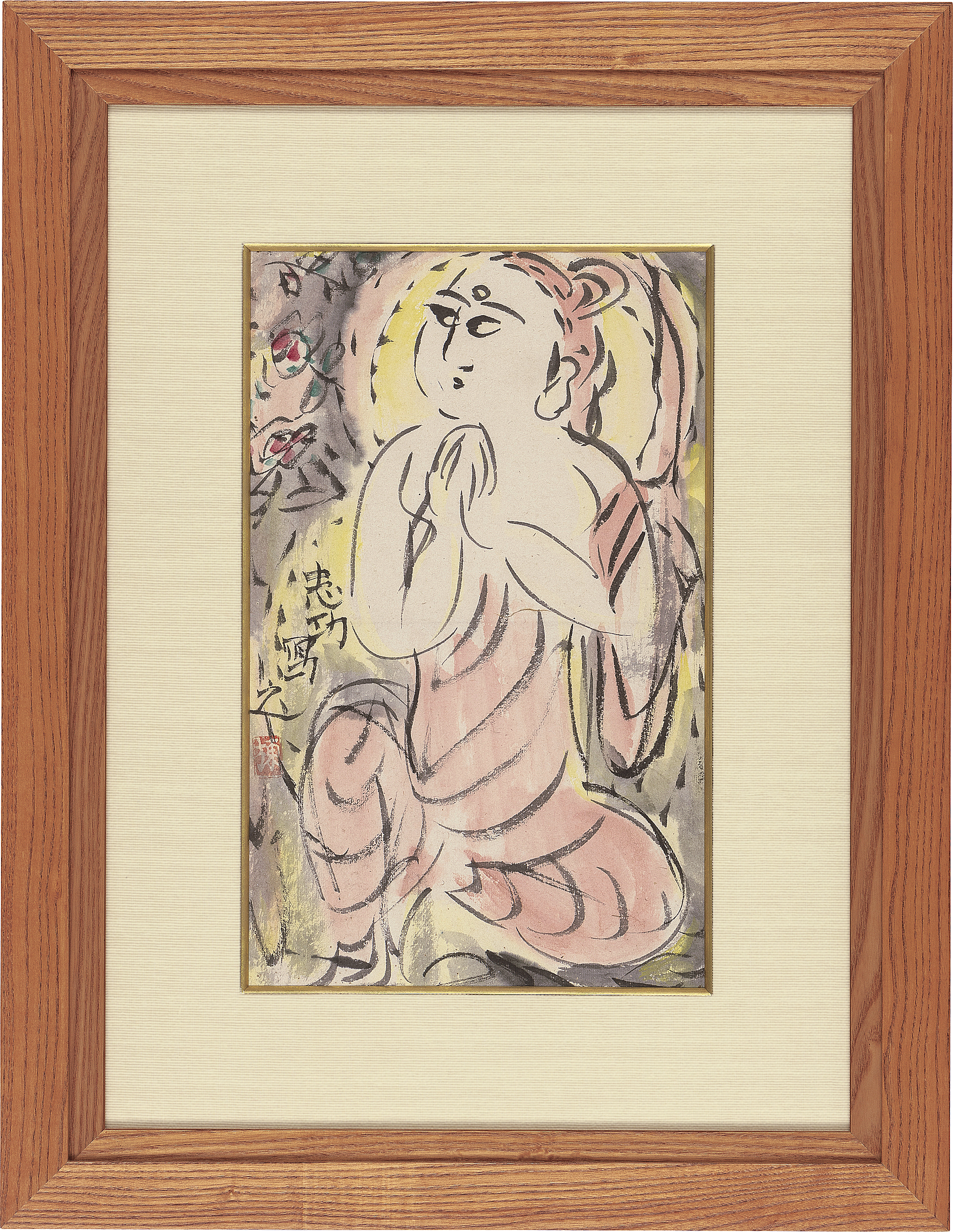 倭絵(紙本・彩色) 43.8×27.6cm 画面左部中央に落款と印 額付