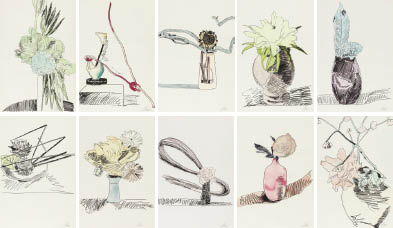 F&S.II.110~119 1974年 シルクスクリーンに手彩 103×69~103.7×70.2(シート)cm ed.250 1点の版面右下にサイン 9点のマージン右下にサイン 全ての裏面にもサイン、年記、ed.、コピーライトスタンプ いずれも作品は裏面3ヶ所をテープで台紙に貼付 全て額付