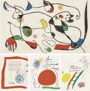 ジャック・プレヴェールの詩にミロによるエッチング・アクアチント・エンボス48点(表紙、裏表紙含む)が収められた挿画本 D.878~925/C.books 203 1975年 40×33.5(本)cm 1点にサイン、ed.200 総ed.225部(200部+XXV部)より巻末にサインとed.の記述 MAEGHT刊 オリジナルケース付