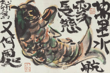 倭絵(紙本・彩色) 31.4×47cm 画面左上に落款、画面右上と左下に印 軸装 箱付