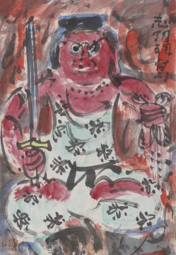 倭絵(紙本・彩色) 49.3×34cm 画面右上に落款、画面左下に印 軸装 箱付