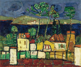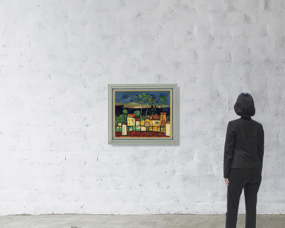 キャンバスに油彩 60×73cm(仏F20号) 画面左下にサイン キャンバス裏とキャンバス裏木枠に「GALERIE ROMANET」スタンプ 額付