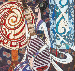 1988年 紙に岩彩 96.5×101.8cm 画面左下にサイン、年記 額裏に献辞 額付