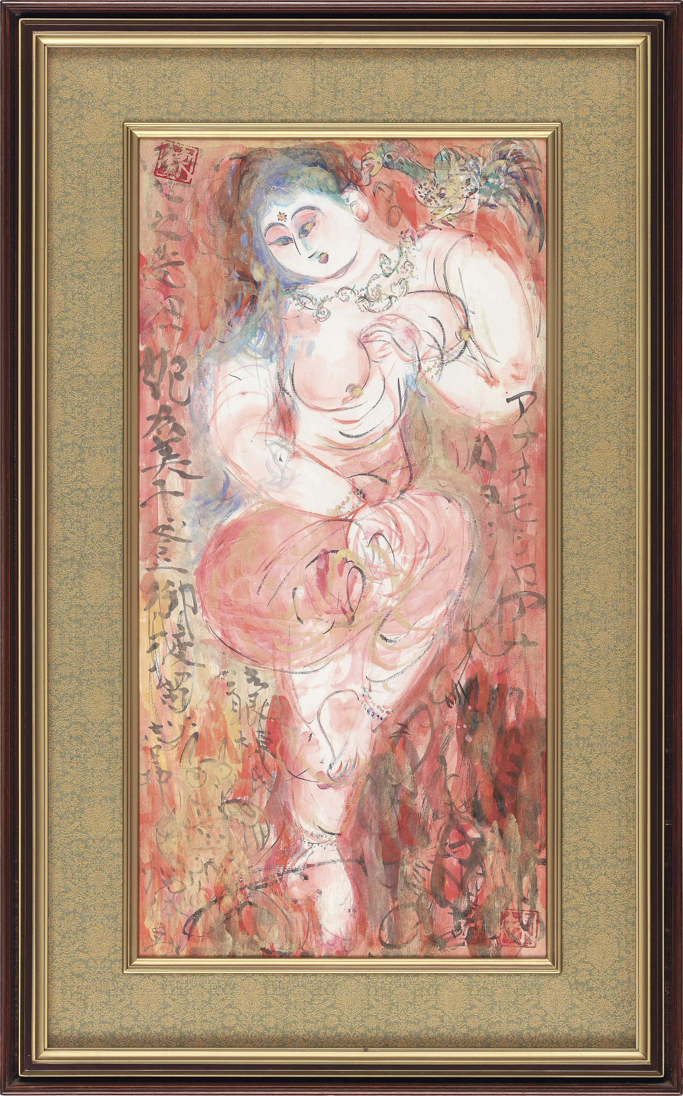 1973年 倭絵(紙本・彩色) 68×34.2cm 画面左下に落款、左上と右下に印 共シール 額付