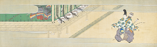 作者不詳「小柴垣草紙」の谷文晁による模写 絹本・彩色10点を軸装した作品 文政11年(1828年) 34.7×1000(全体)cm/34.7×62~34.7×113.7cm 巻末の1点に落款、年記 箱付