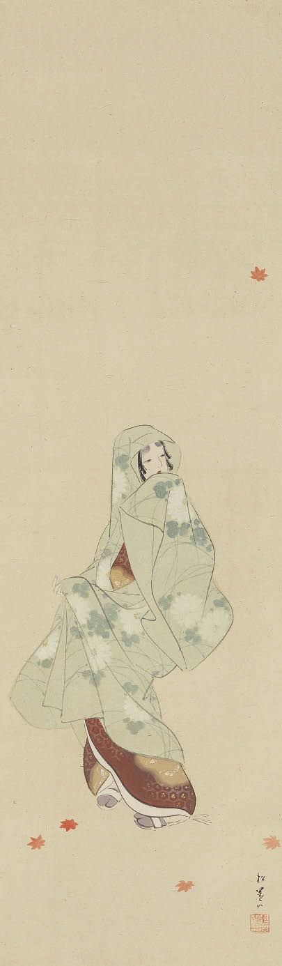 紙本・彩色 130×38.4cm 画面右下に落款と印 軸装 共箱