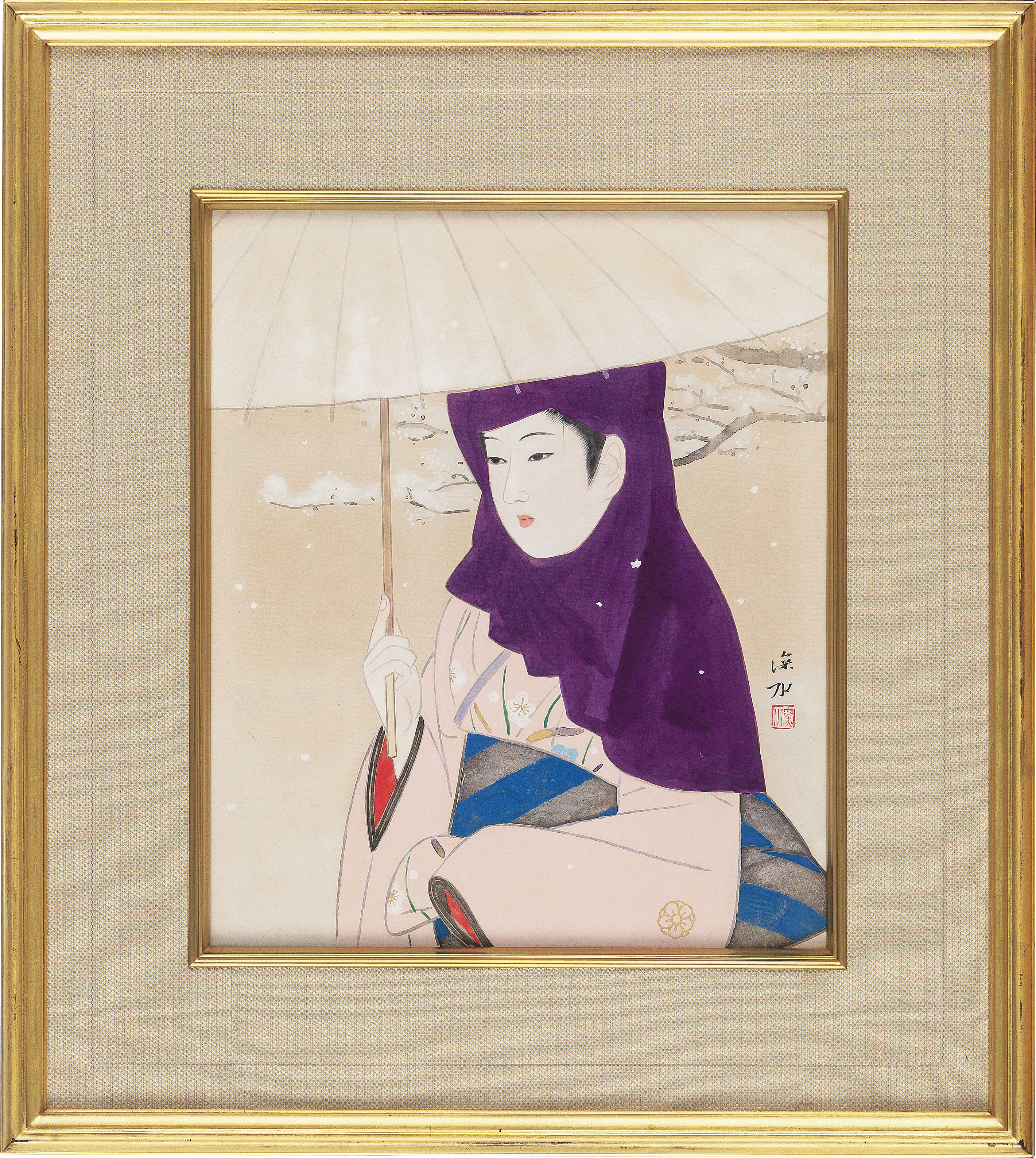 紙本・彩色 37.6×31.6cm 画面右下に落款と印 「濱田台兒」鑑題シール 額付